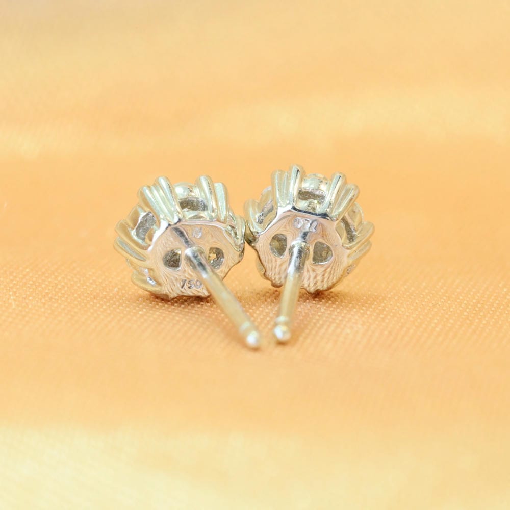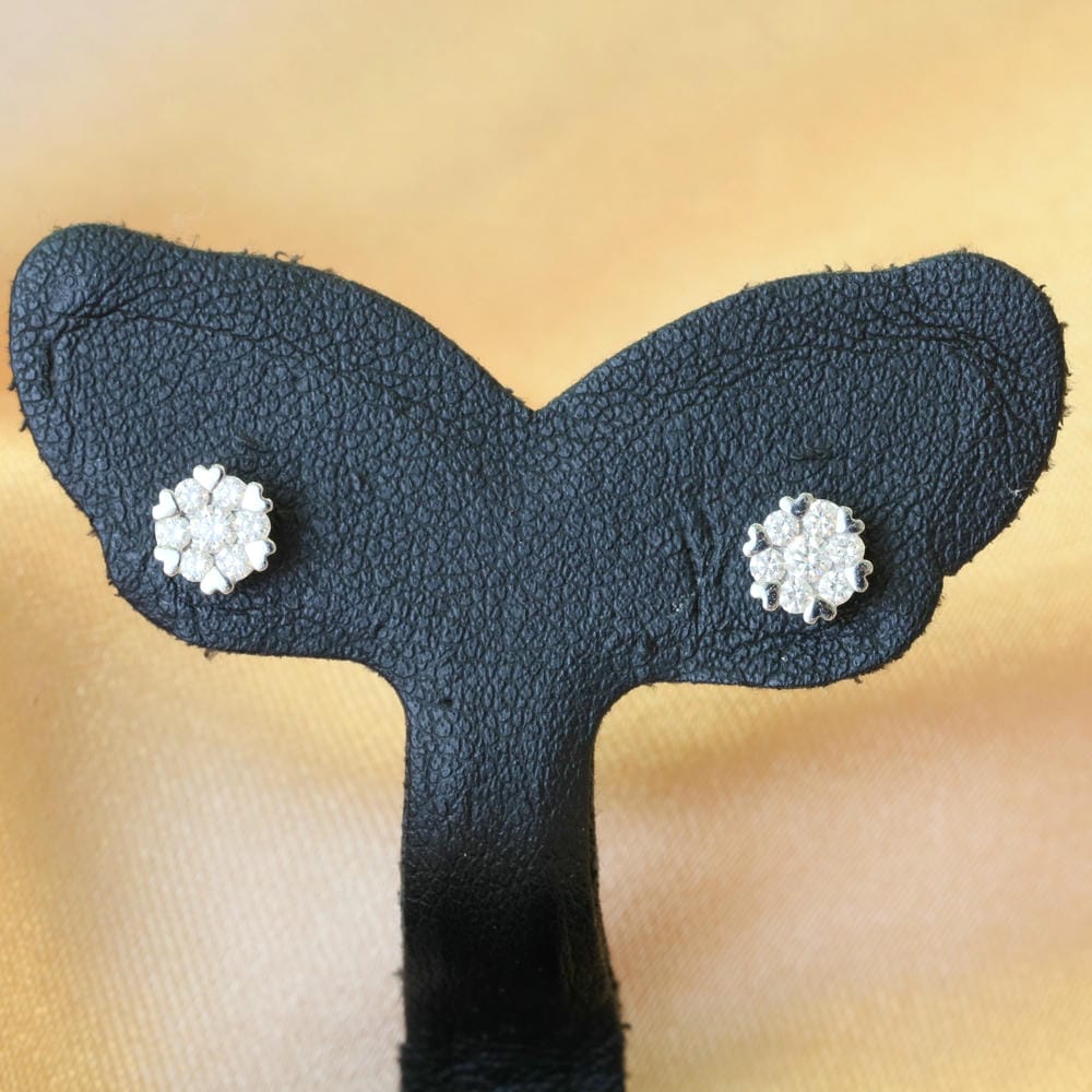 ต่างหูทองคำขาวประดับเพชร น้ำหนัก 2.24 กรัม ประดับด้วยเพชรกลม 0.87กะรัต จำนวน 2เม็ด และ 0.22กะรัต จำนวน 12เม็ด